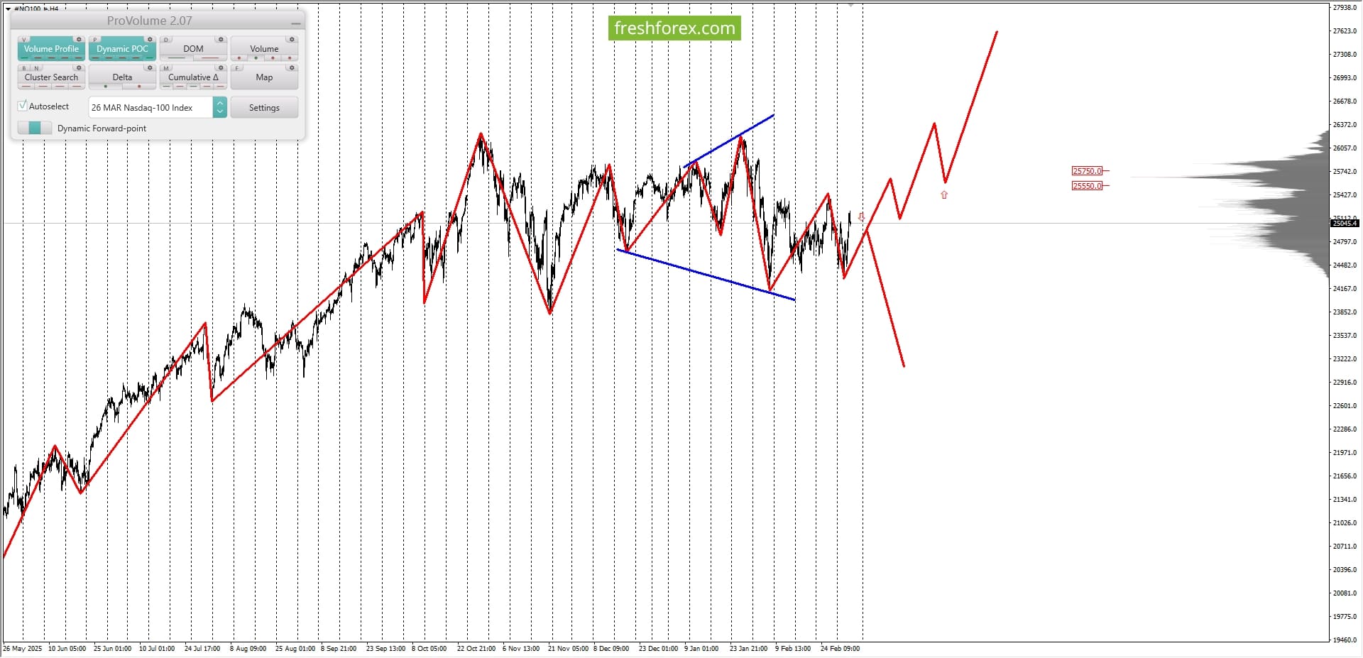 #NQ100: BUY 24651.6-24929.1, TP1-25206.6, TP2-25979.3. Весенний бонус 126% на пополнение от 202$. Введи промокод UPSUN126 в Личном кабинете и участвуй! Условия Долгосрочная тенденция: временная неопределённости. Максимальное скопление объемов текущего контракта расположено в диапазоне, по котировкам 25550.0–25750.0. В настоящий момент по #NQ100 совершаются инвестиционные операции ниже указанного диапазона, что говорит о силе продавцов.#NQ100: BUY 24651.6-24929.1, TP1-25206.6, TP2-25979.3.