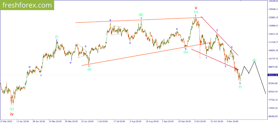 BTCUSD: BUY 92800, SL 89400, TP 102800. Только для наших читателей - бонус 202% при пополнении от $202, укажи промокод WINх2 в поддержке и торгуй с УТРОЕННЫМ капиталом, подробности акции по ссылке.  Биткоин продолжает оставаться под серьезным давлением со стороны продавцов. Очередная попытка выправить ситуацию закончилась снижением и обновлением локального минимума. Судя по всему это заключительная для этого цикла снижения волна. Начальный диагональный треугольник сформирован и рынок готов идти дальше развивать следующие волны. А следующей моделью, исходя из предполагаемого сценария, является коррекция по умолчанию являющаяся простым зигзагом. В данный момент по-прежнему сохраняется хорошая возможность для входа в сделки на покупку с целью отработать этот коррекционный отскок, поэтому рекомендуется обратить на эту возможность внимание. Инвестиционная идея: BUY 92800, SL 89400, TP 102800 Наша компания предоставляет возможность получать доход не только с Вашей торговли. Привлекая клиентов в рамках партнерской программы, Вы можете получить до 30 долларов за лот! Больше аналитической информации Вы можете найти на нашем сайте