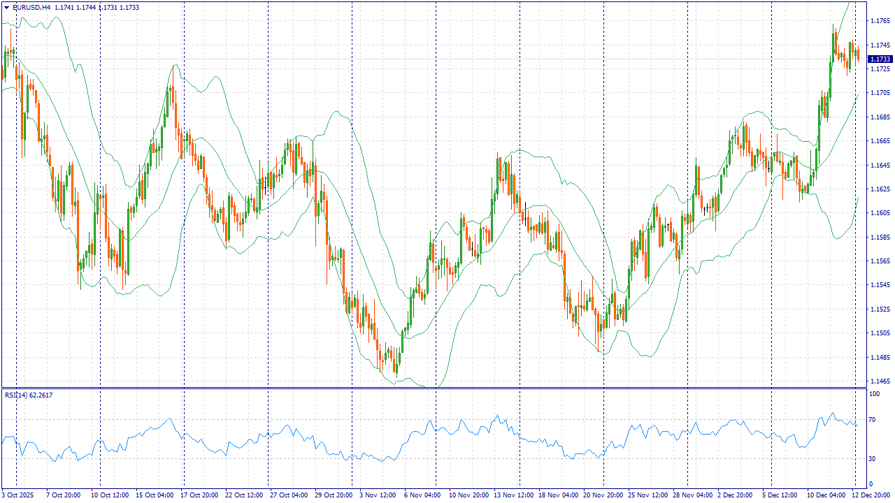 EUR/USD в начале недели удерживается рядом с 1,1735, но импульс роста ослаб. Рынок переоценивает политику ФРС после недавнего снижения ставки и комментариев представителей регулятора о возможной паузе, чтобы оценить динамику инфляции.