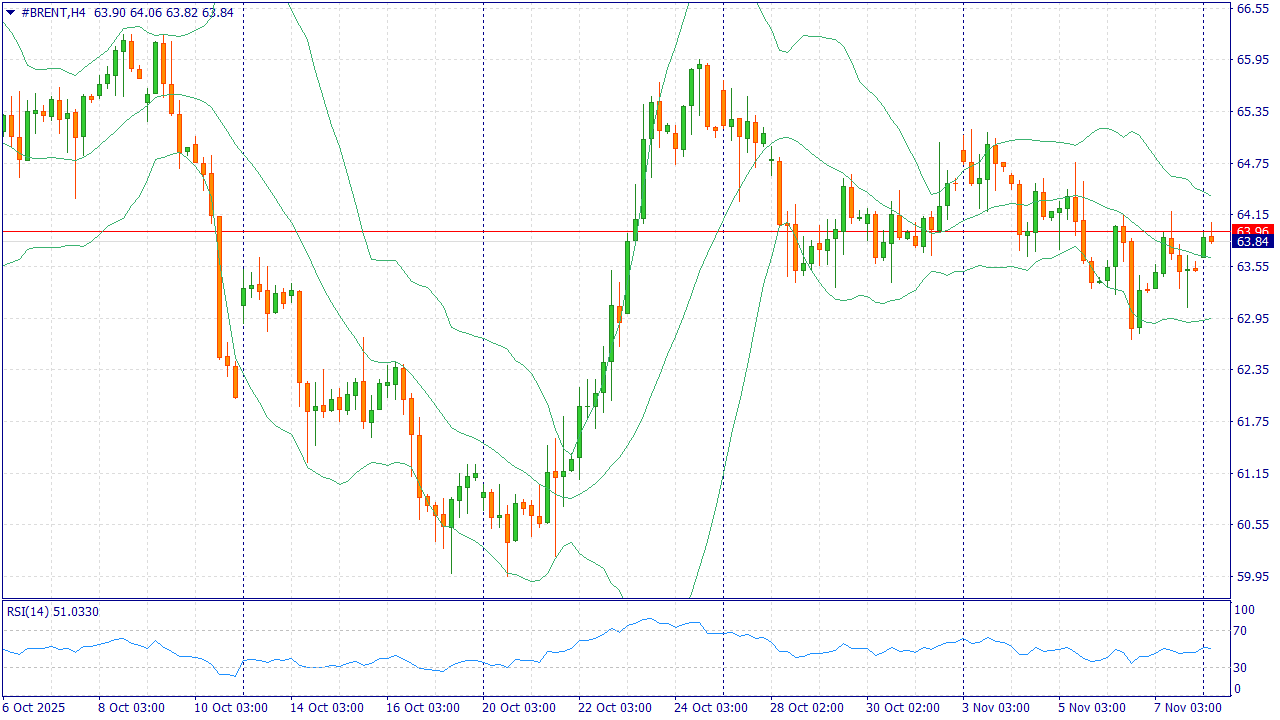 Нефть Brent в понедельник, 17 ноября 2025 года, держится около $64 за баррель: рынок переваривает возобновление отгрузок в российском порту Новороссийск после кратковременной остановки и одновременно оценивает глобальный баланс предложения и спроса. Последние оценки указывают на нарастающий избыток предложения в 2025–2026 годах: агентства фиксируют ускорение добычи при умеренном росте спроса, тогда как ОПЕК+ сигнализирует готовность гибко управлять поставками на фоне понижения официальных цен для Азии в декабре. При этом геополитические риски и точечные перебои периодически возвращают премию за риск в цену, сглаживая давление со стороны избыточного предложения.
