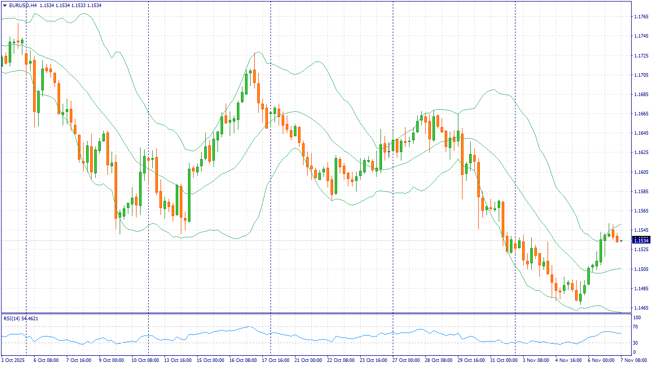 Такой баланс факторов — умеренно сильные данные США против слабых перспектив еврозоны — формирует сценарий «продавать на росте». По состоянию на 7 ноября пара колеблется около 1.1540–1.1550, и в условиях сохраняющегося дифференциала ставок и роста доходностей США риски для евро остаются смещёнными вниз.
