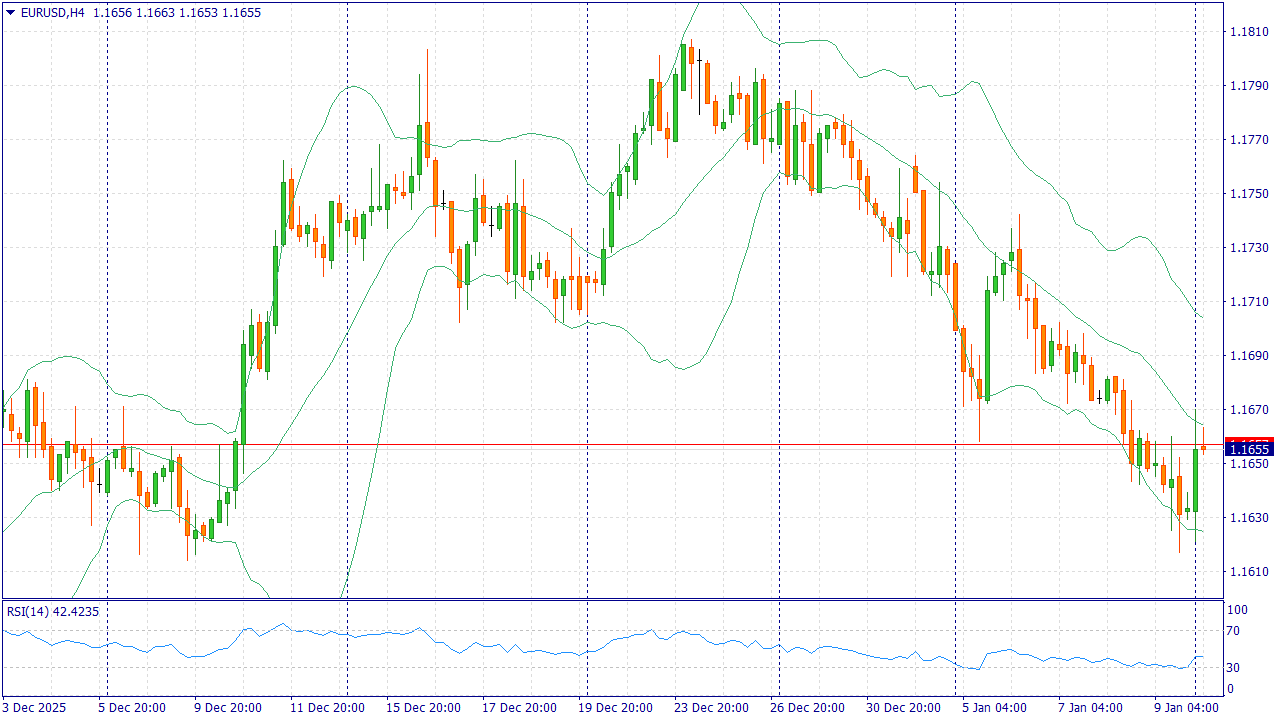 EUR/USD в понедельник, 12 января, держится у 1,1660, отыгрывая ослабление доллара после сообщений о расследовании вокруг руководства ФРС и росте нервозности на рынках. Инвесторы закладывают повышенную неопределённость в ожиданиях по ставке США и временно снижают спрос на доллар, параллельно уходя в защитные активы и золото.