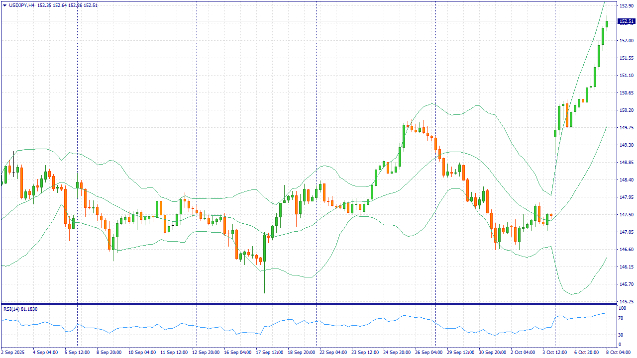 Иена укрепляется в среду, 15 октября 2025 года, поскольку доллар теряет поддержку на ожиданиях скорого снижения ставки ФРС. Усиление торговых трений между США и Китаем повышает спрос на защитные активы, к которым традиционно относится иена, что тянет пару ниже отметки 152,00. Риск-офф эпизоды в азиатскую сессию усиливают коррекционное давление на доллар против иены.