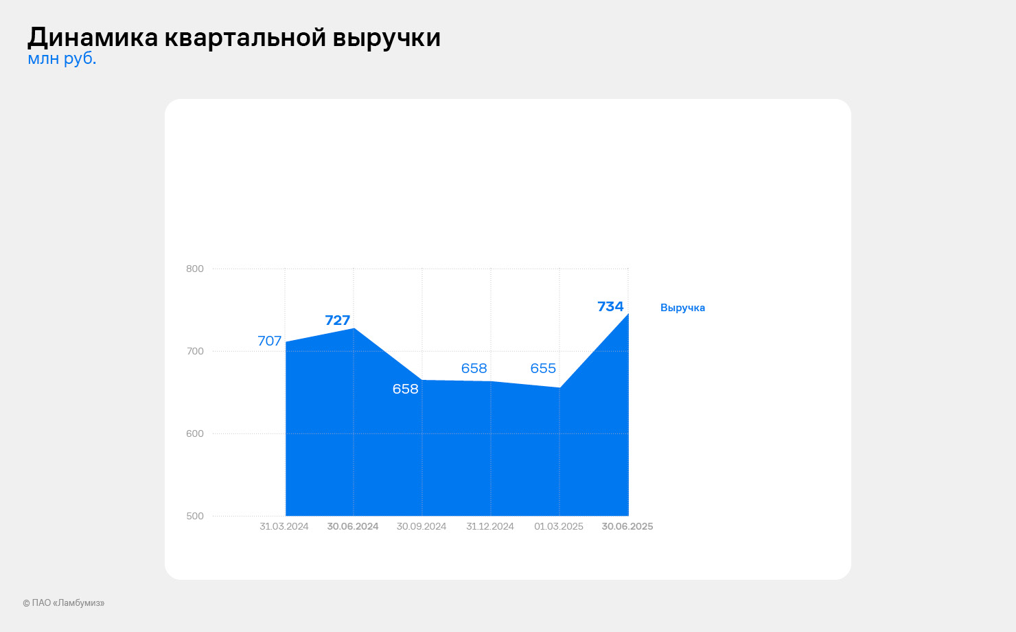 Вместе с тем, рост продаж в натуральном выражении как по основной продукции, так и по новым направлениям, позволил увеличить выручку во втором квартале 2025 года на 12% по сравнению с первым кварталом текущего года.
