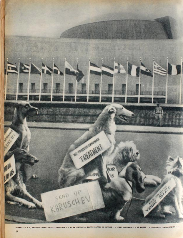 Были и протесты - в Нью-Йорке устроили митинг с собаками, плакатами (https://avatars.dzeninfra.ru/get-zen_doc/523216...) "отправьте Хрущева вместо следующей собаки" и пивом. Митингующие пили, собаки выли лаяли. А в Британии и вовсе требовали "молчать минуту в день, пока коммунисты мучают собаку в космосе". Некоторые источники сообщают про письма (http://graphics8.nytimes.com/packages/pdf/scien...) "отправляйте вместо собак негритят, их много!".
