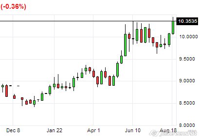 На данный момент пара USD/ZAR двигается в области 10.35, отступив от дневного максимума, установленного на отметке 10.4423.